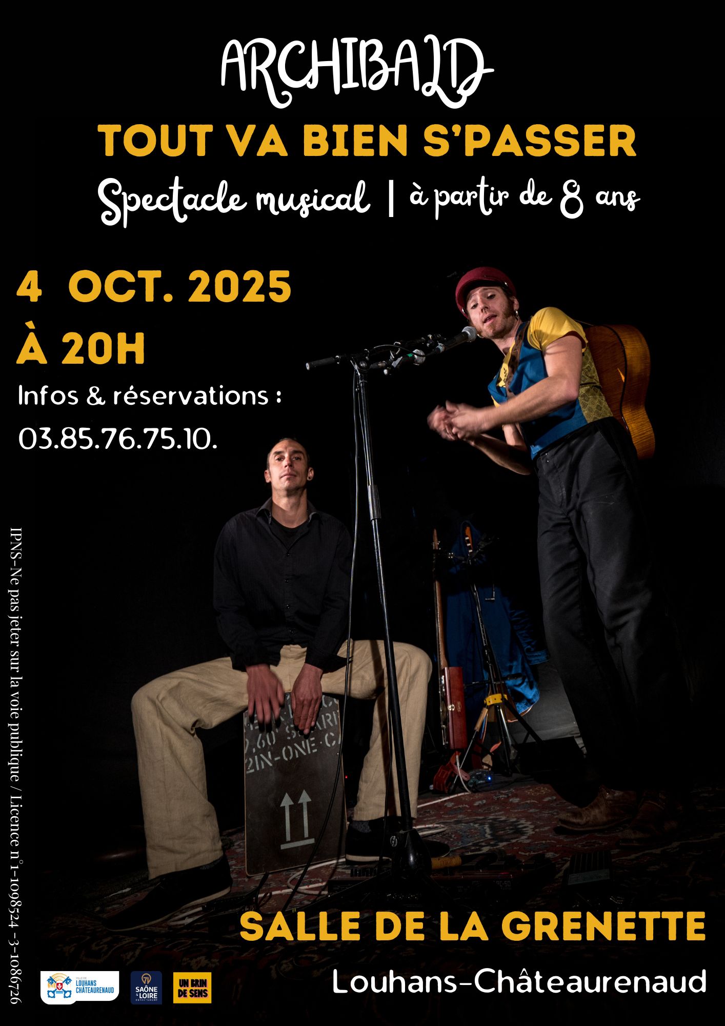 𝐑𝐞𝐧𝐝𝐞𝐳-𝐯𝐨𝐮𝐬 𝐥𝐞 𝐬𝐚𝐦𝐞𝐝𝐢 𝟐𝟓 𝐦𝐚𝐢 à 17h à la Cour Vial de Louhans-Châteaurenaud. Le spectacle est gratuit pour les enfants et coûte 6 euros pour les adultes. Vous pouvez réserver vos places à l'avance au 03 85 76 75 10 (avec paiement sur place le jour du spectacle), les acheter à l'office du tourisme de Louhans-Châteaurenaud ou acheter vos billets directement sur place, sans réservation préalable, le jour de la représentation.