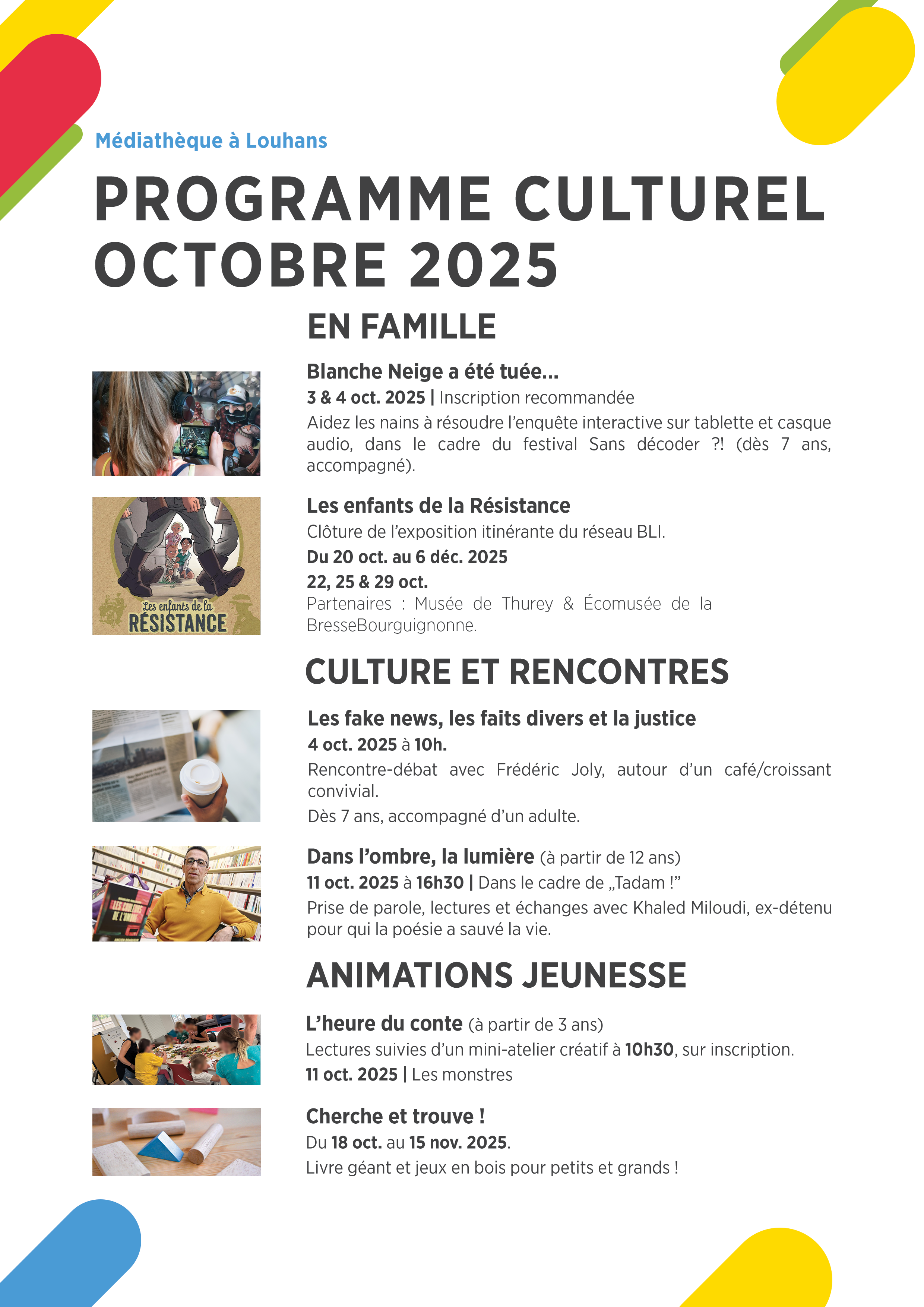 Le voici, le programme d'octobre de la médiathèque de Louhans-Châteaurenaud ! A consommer sans modération !